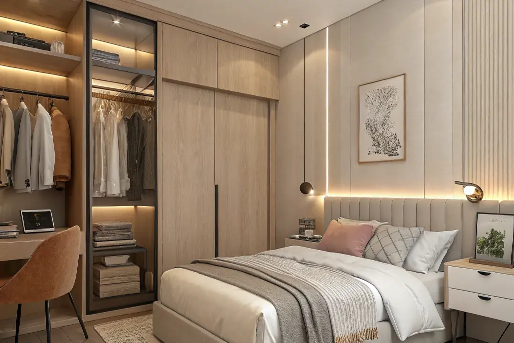 Sleek minimalist wardrobes with clean lines and neutral tones, ideal for modern apartments and condos.