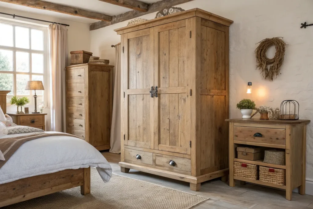 Rustic country wardrobes crafted from reclaimed or distressed wood — bringing farmhouse charm indoors.