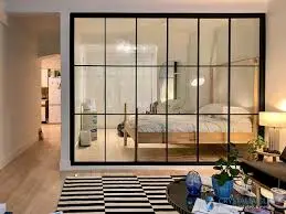 Glass partitions dividing spaces while maintaining visibility and openness.