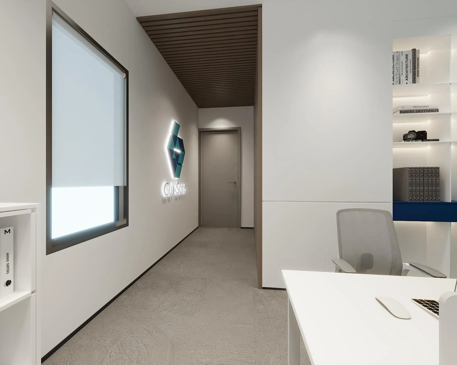 • Mixed Materiality: A sophisticated blend of industrial grey flooring and warm timber ceiling slats for a multi-dimensional sensory experience.