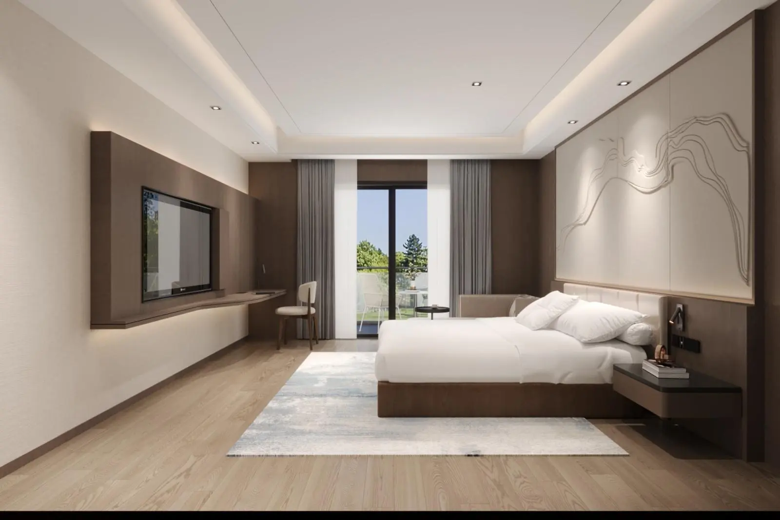 Functionality and durability were key considerations throughout the project. Materials were carefully selected to ensure long-term performance in a hotel environment, while custom furniture solutions enhance both visual consistency and daily usability. The result is a hotel suite that balances aesthetics with practicality, offering guests a quiet, comfortable, and visually cohesive stay.